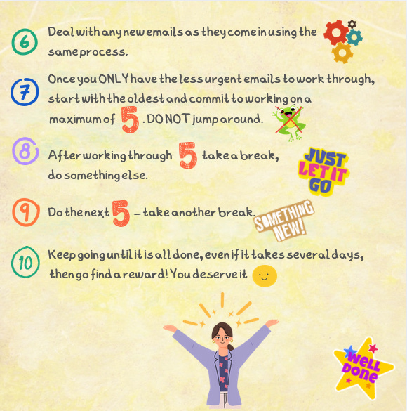 Then I started at the bottom/oldest of my unread emails, taking on five at a time.